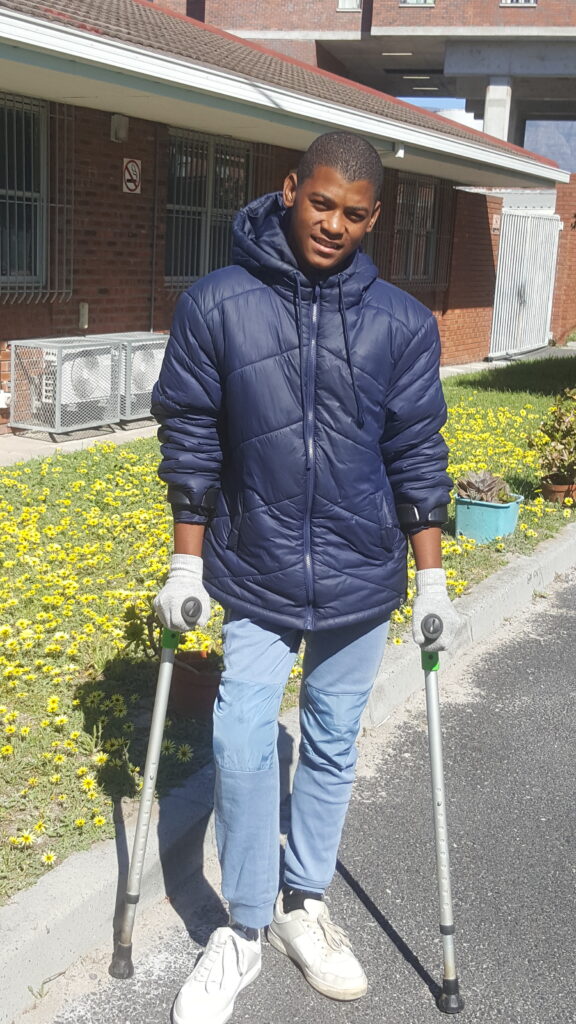 We are currently in the process of arranging a prosthetic leg for Janesto. At his first physiotherapy appointment, a growth on his bone was discovered – one that would prevent the prosthesis from fitting correctly. He has since been taken for X-rays at the Somerset West government hospital and now needs to see an orthopaedic surgeon to have the bone removed before moving forward with the prosthetic.